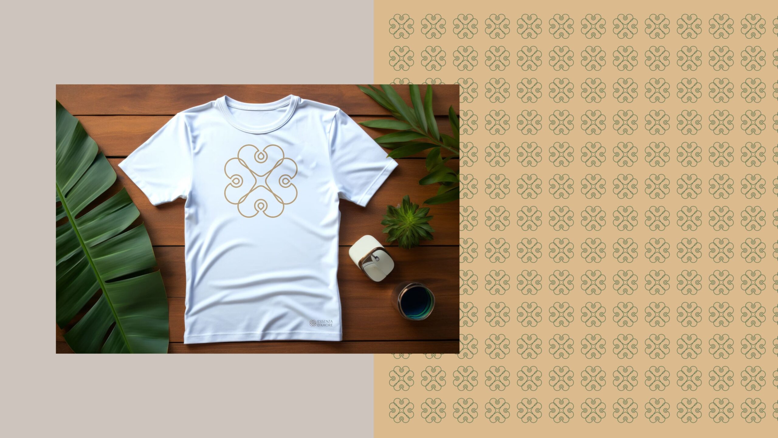 O conjunto forma um emblema que remete a uma flor, jardim ou mandala, conectando-se diretamente à natureza e ao espaço aberto da Essenza D’Amore.