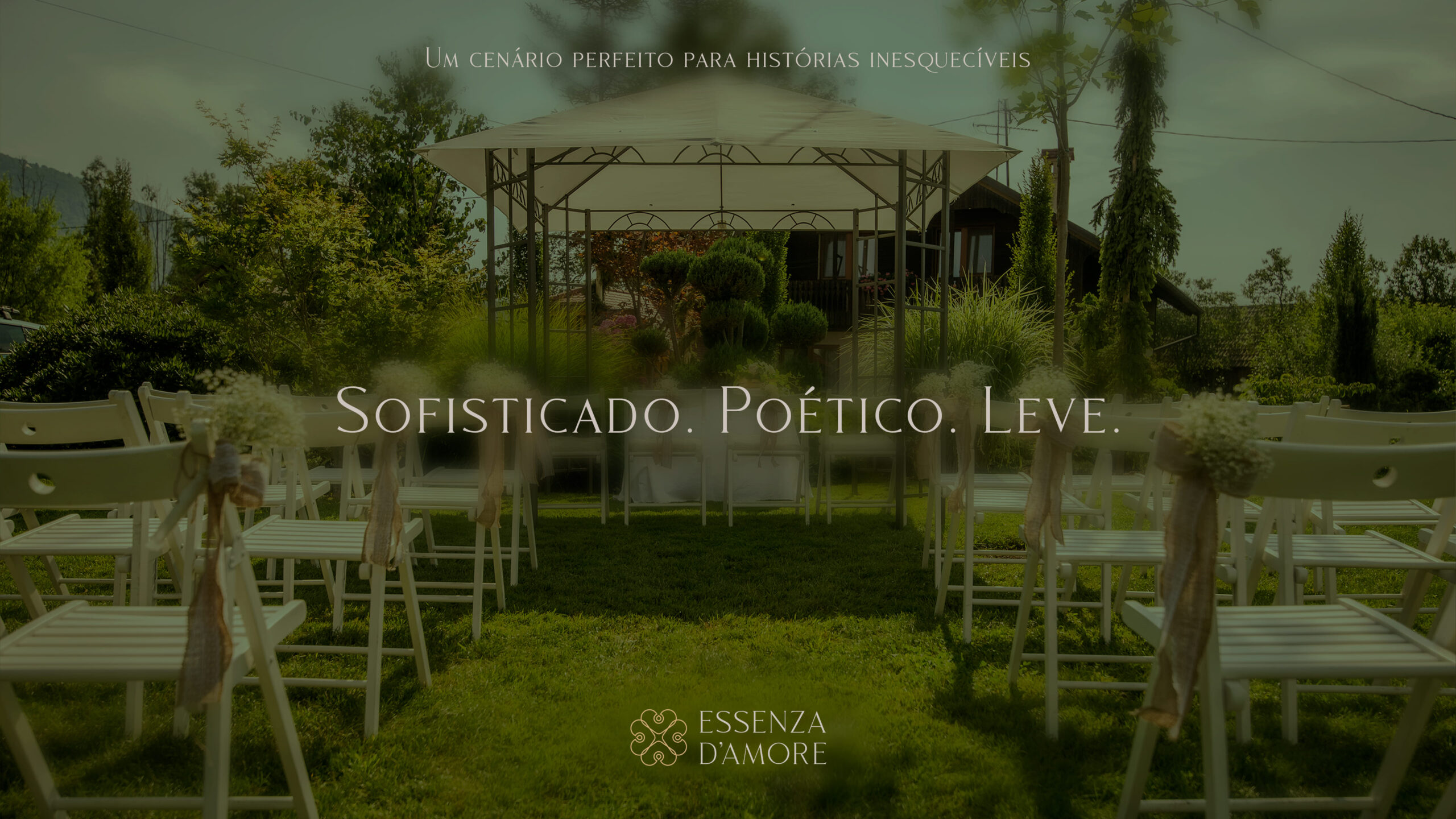 Essenza D’Amore é um espaço para eventos sofisticado, poético e elegante, localizado em meio a uma natureza exuberante. A marca une o rústico ao moderno, transmitindo confiança, beleza e exclusividade. É o cenário ideal para casamentos e celebrações luxuosas, onde cada detalhe revela a essência do amor.